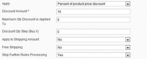- Enter any value in Discount like 10 and select Yes from Stop Further Rules Processing dropdown.